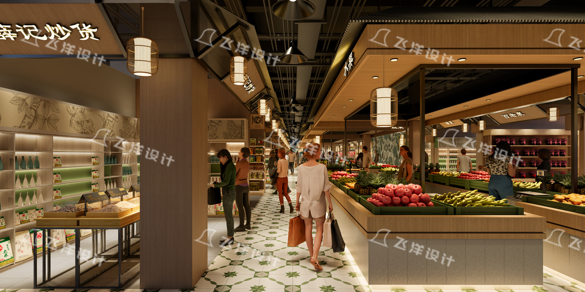 飞洋设计团队以“存量焕新”与“社区共生”为双核理念,通过动线重构、文化植入与智慧联动,将三林农贸市场从一个功能单一的传统菜场,升级为融合生鲜购物、便民服务与社交休闲的现代邻里中心。项目不仅解决了原有空间效率低下与垂直客流割裂的痛点,更通过上海地域文化的当代转译,让市井烟火与城市精致生活在此和谐共生,成为上海“15分钟社区生活圈”建设的标杆实践。